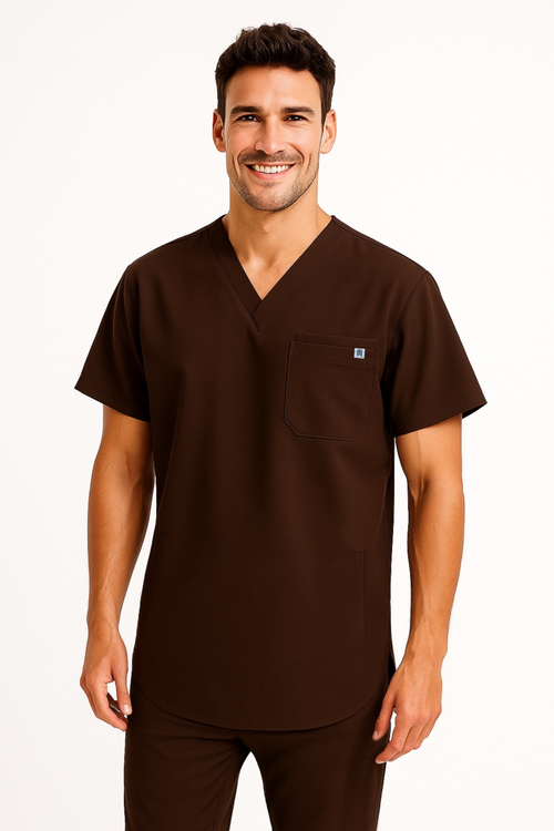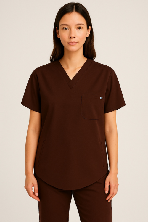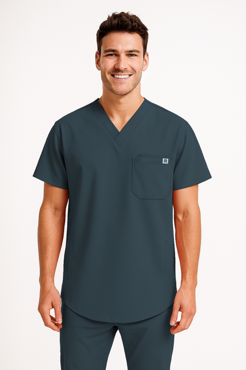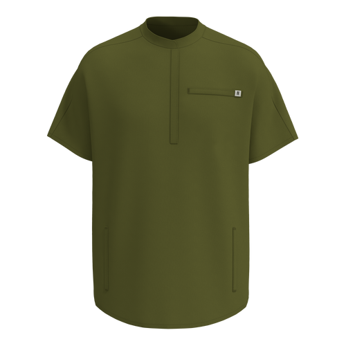 Casacca con scollo a V a maniche corte dal taglio morbido e stondato. Dotata di taschino sul petto a doppio scomparto e due pratiche tasche a filetto laterali pensate per la funzionalità quotidiana... -